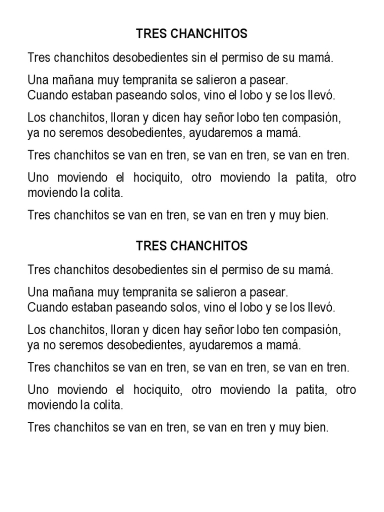 Letra de los tres cochinitos. Un lobo asechaba sus alrededores y cada uno tenia su. Las primeras ediciones datan del siglo XIX. Diálogos ocurren entre dos o más personajes y representan la expresión verbal de los personajes.